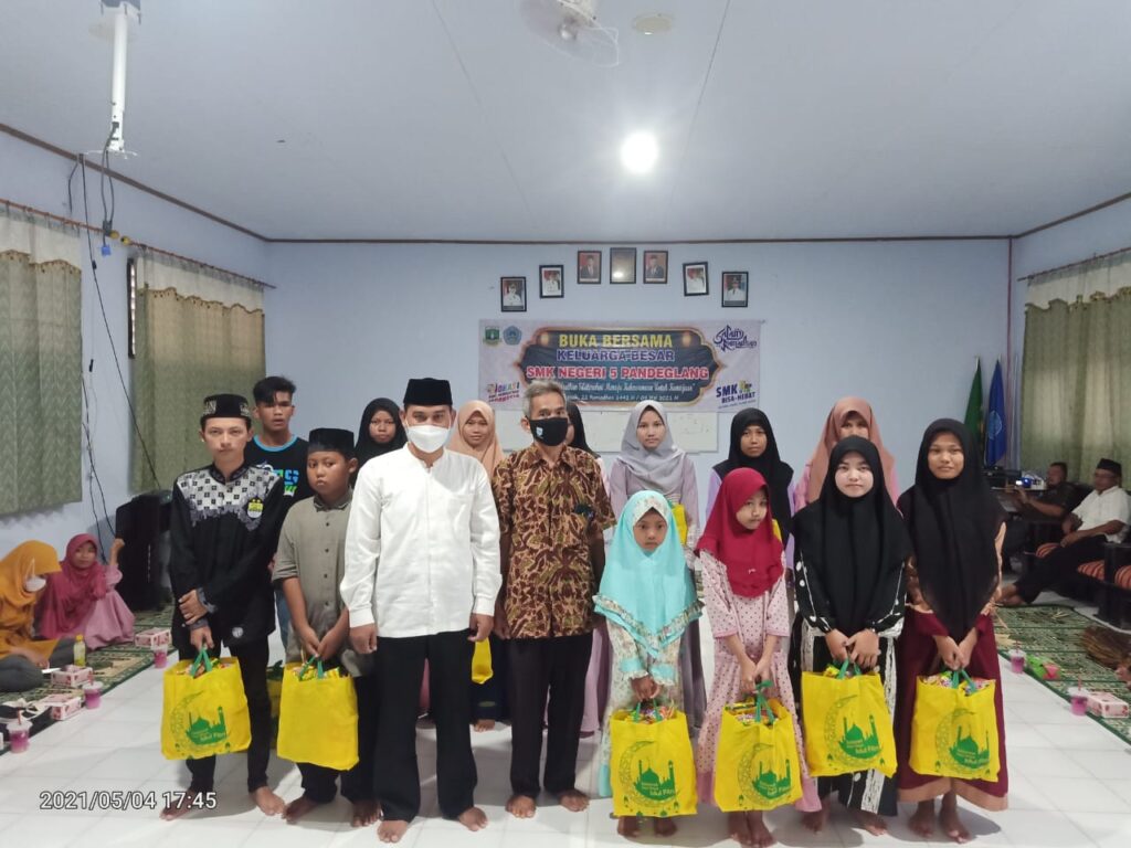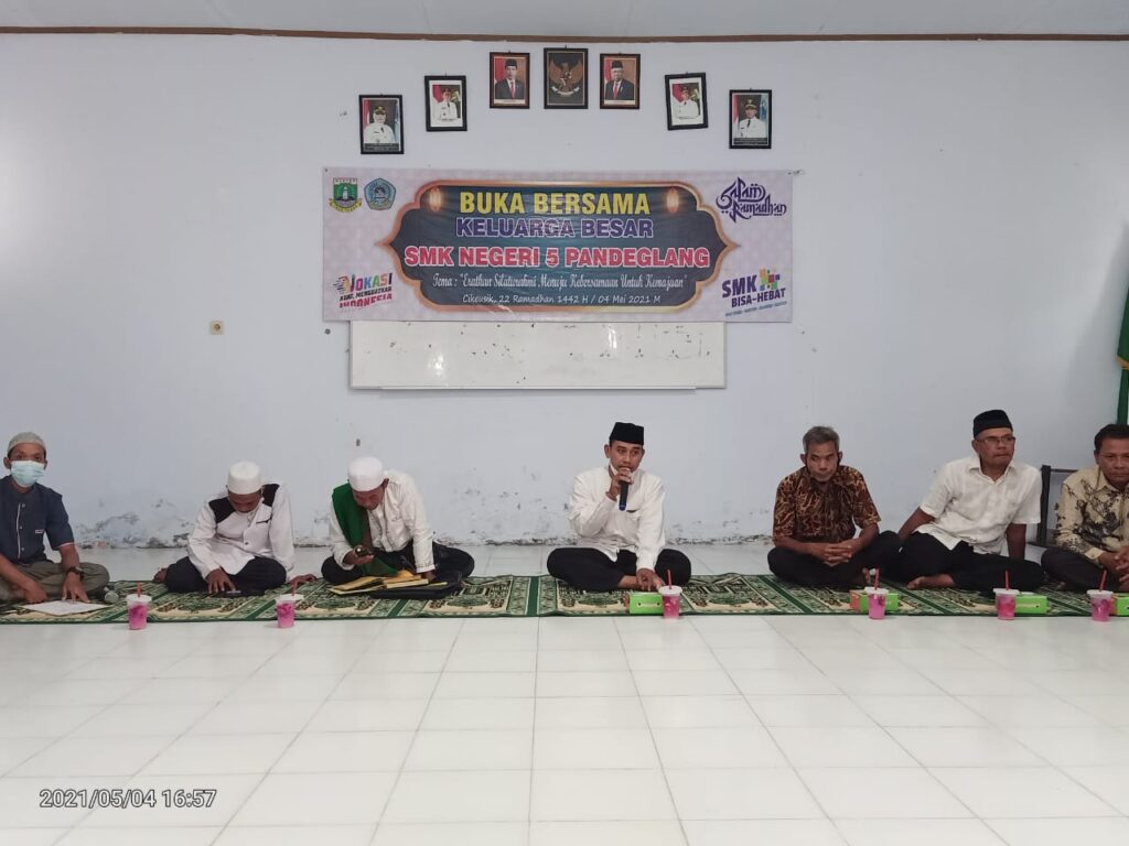 SMK Negeri 5 Pandeglang atau yang dikenal dengan SMK Mapan pada Selasa, 04 Mei 2021 bertepatan dengan hari ke 22 Ramadhan 1442 H mengadakan acara Buka puasa bersama dan Santunan anak yatim yang dihadiri oleh Kepala Sekolah, Komite Sekolah, segenap dewan guru dan staf Tata Usaha dan juga anak yatim yang terdiri dari siswa dan masyarakat di sekitar lingkungan SMK. Walaupun semua guru dan staf TU sudah divaksin, acara ini tetap dilaksanakan dengan memperhatikan protokol kesehatan (04/05/2021).