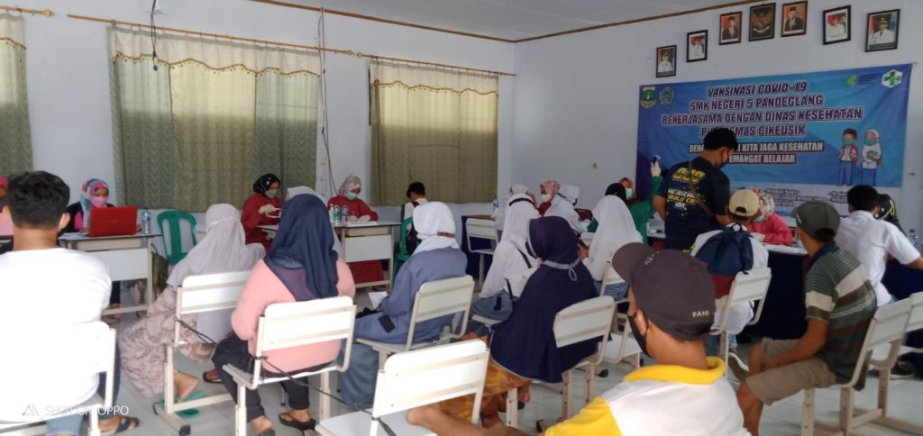 Cikeusik, 11 Oktober 2021. SMKN 5 PANDEGLANG melaksanakan program Vaksinasi tahap 2 untuk seluruh siswa kelas X sampai kelas XII.